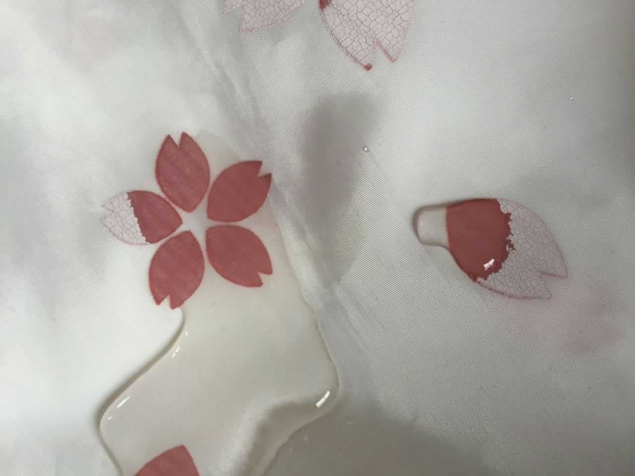 2.待圖案的變色顏料干透后,用100-120目絲網(水性網)將遇水變色顏料印在圖案之表面,若需稀釋。可加入小量蒸餾水稀釋。頂凡遇水變色顏料干透后用肉眼幾乎看不見,顯示透明的效果。